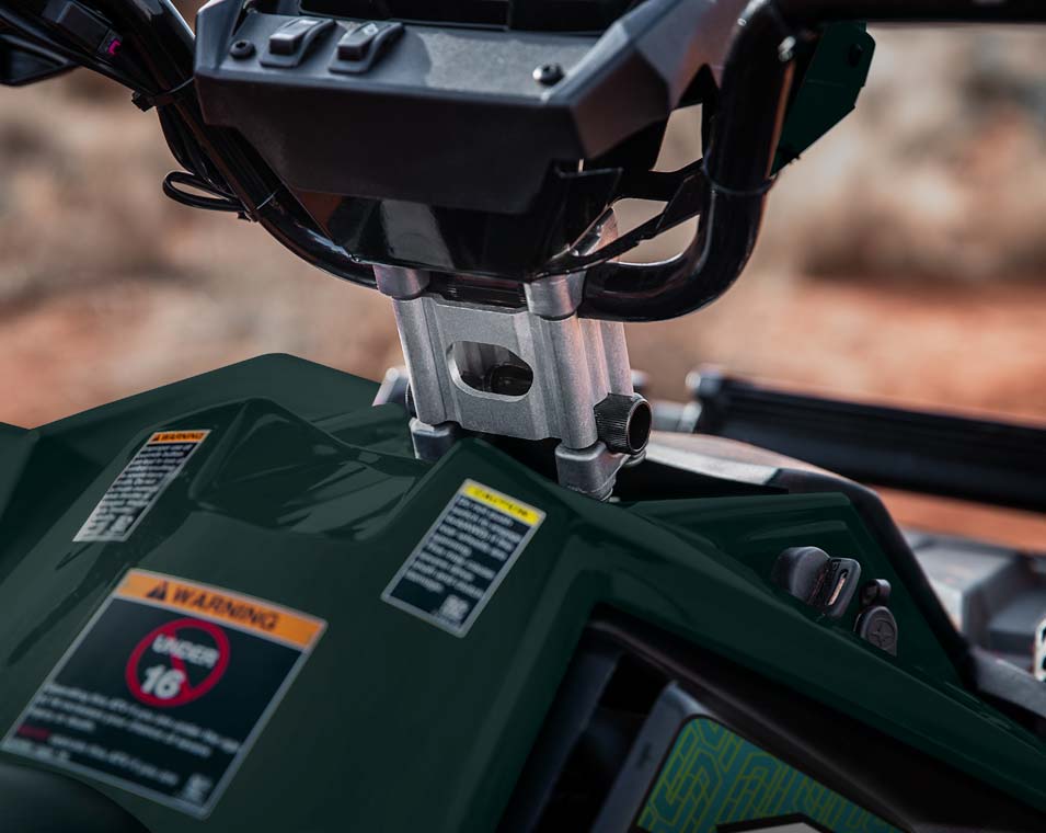 - 2 Drive Mode: Performance/ Standard, 12-volt power plug, pre-wired for hand and thumb warmers, independent battery charging port, Front bumper, painted plastics, painted springs, fender flares